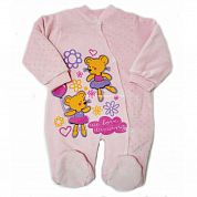 Комбинезон без капюшона, с закрытыми ножками, рукава на манжете, спереди на кнопочках от воротничка до конца ножки. Украшен спереди рисунком персонажей из мультиков.